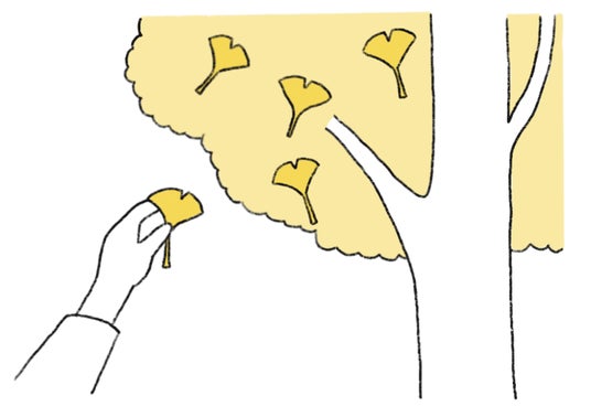 奈義のシンボルツリーであるイチョウの形に切り抜いた紙にメッセージを書いていただきます。