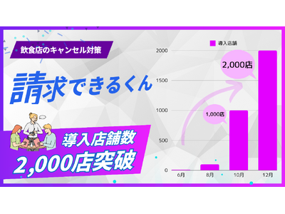 2024年5月に提供を開始した「請求できるくん」は、順調に導入店舗数を伸ばし、10月に1,000店舗を達成しました。その後も導入事業者の皆様から多くの高い評価をいただき、12月における導入数は2,000店舗を突破し、急成長を遂げています。