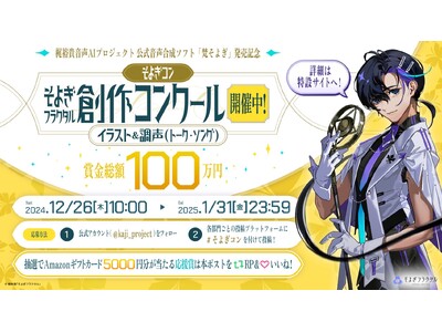 応募期間は2024年12月26日(木)~2025年1月31日(金)。イラスト、トーク調声、ソング調声の3部門で開催され、総額100万円の賞金が入賞者に贈呈されます。