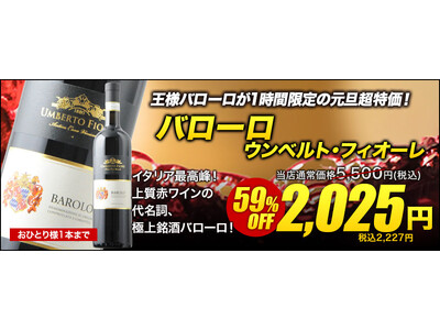 世界16ヵ国100の生産者から2000を超えるワインを取り揃える「ワインショップ ソムリエ」は、新年を迎える日本と2025年を素敵な年にしたいすべての人を応援すべく、1時間の時限セールを実施いたします。2024年生産量世界一のワイン大国イタリアで「王のワインにして、ワインの王」と呼ばれるバローロを、2025年を祝い2,025円で販売いたします。また、有名ワイン評価誌で高得点を獲得した、世界三大スパークリングワインの一つであるスペインのカヴァを2,025円で販売します。