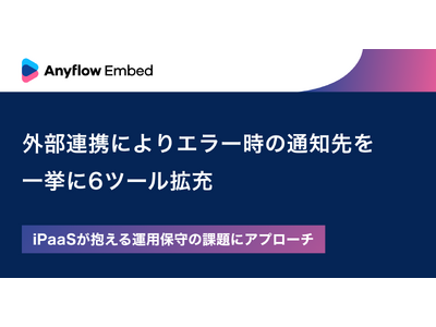 Anyflow株式会社(本社:東京都千代田区、代表取締役CEO:坂本 蓮、以下Anyflow)は、SaaS事業者向けのAPI連携プラットフォーム「Anyflow Embed」について、通知機能を拡張し一挙に6ツールに通知を送れるようになったことをお知らせいたします。