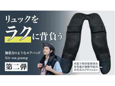 株式会社アハル・テケ(本社:奈良県香芝市、代表取締役社長:美馬大毅)は2024年12月26日(木)21:00より、リュックの重さを体感40%軽減する肩パッド【 Air-on.Pump 】のクラウドファンディングを、応援購入サービス「Makuake」にて開始いたします。