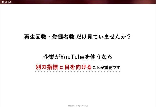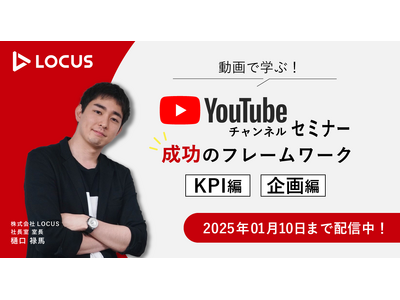 動画を起点として2,000社以上の企業にコンサルティング事業を展開する株式会社LOCUS(東京都千代田区、代表取締役 瀧良太)は、「動画で学ぶ "YouTubeチャンネル”セミナー 成功のフレームワーク ~ KPI編/企画編 ~」の2本立てでセミナー動画の期間限定(~2025年1月10日(金)まで)配信を開始しました。
