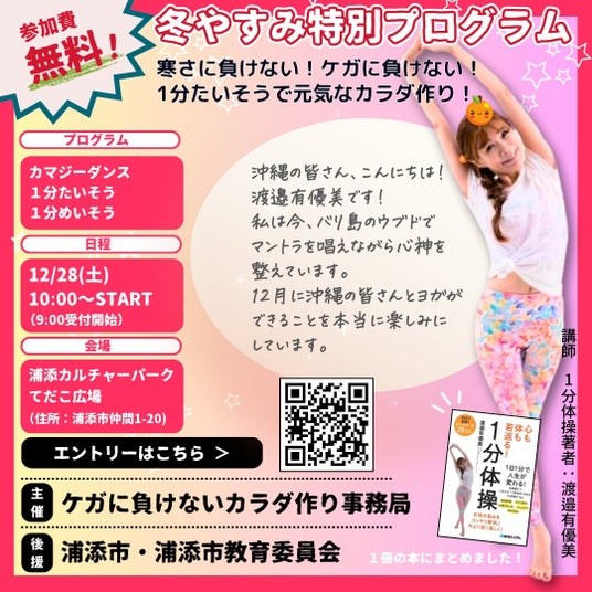 12月28日(土)に開催される「冬休み特別プログラム」では、渡邉有優美氏が考案した「1分間体操」を体験いただけます。