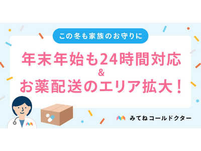 家族のためのオンライン診療アプリ「みてねコールドクター」を提供する株式会社コールドクター(東京都渋谷区、代表取締役社長:合田武広、以下コールドクター)は、年末年始も24時間の体制にてオンライン診療を提供いたします。また、年末年始は薬の配送エリアの臨時拡大と即日配送の受付時間延長を行います。