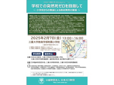 第7回 日本AED財団Schoolフォーラム を2025年2月7日(金)に三重大学教育学部附属小学校で開催することを決定いたしました。