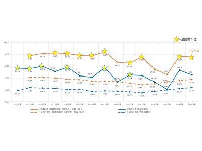 44の国立教員養成大学・学部の教員就職率(卒業者数から大学院進学者と保育士就職者を除いた率)の平均が69.0%の中、鳴門教育大学学校教育学部卒業者の教員就職率は87.9%で、全国第1位となりました。