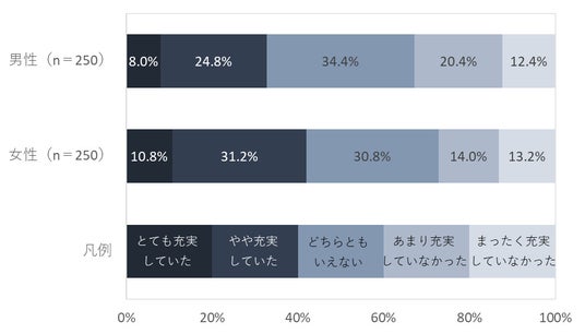 ● 男性は「充実していた」と「充実していなかった」が同率に