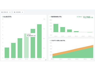 売上高やプロダクト/サービス別売上高、現金残高の推移が1Clickで、よりグラフィカルに確認できるようになり、経営状況をモニタリングしやすくなりました。