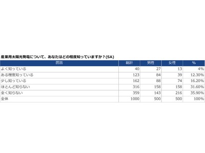 産業用太陽光発電は、再生可能エネルギーの利用拡大や地球温暖化対策の観点から重要な役割を担うことが期待されていますが、一般の人々の認知度はまだ低いことが分かりました。