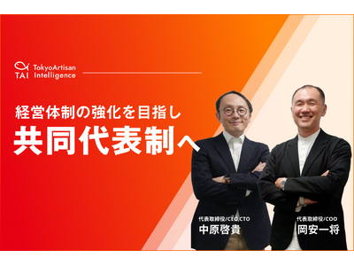 Tokyo Artisan Intelligence株式会社(本社:神奈川県横浜市、代表取締役:中原啓貴(CEO,CTO)、岡安一将(COO)、以下:TAI)は岡安一将が代表取締役・最高執行責任者(COO: Chief Operating Officer)に就任したことをお知らせいたします 。また、代表取締役の中原啓貴が技術領域を管轄する最高技術責任者(CTO: Chief Technology Officer)を兼務いたします。これらの変更により、共同代表制へと移行いたしました。