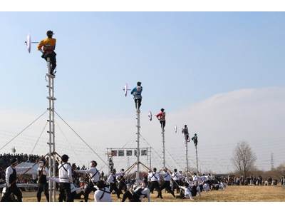 恒例となっている出初め式では、制服を着用した消防職員・消防団員による行進や消防団員によるはしご乗り演技、消防車による一斉放水などが行われます。一級河川加古川に向けて放水する模様は圧巻で、他では見られない加古川市ならではの式典です。毎年、市内外から多くの方が見学に来られます。