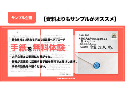 資料よりもサンプルを。手紙営業や手紙PRにご興味のある方に無料サンプルをご依頼いただくことで、実際にビジネスにおいて「手紙」を活用することの効果について実体験いただける企画をスタートしました。