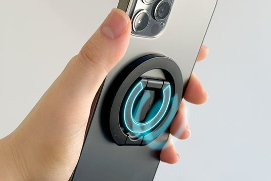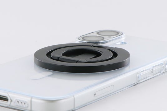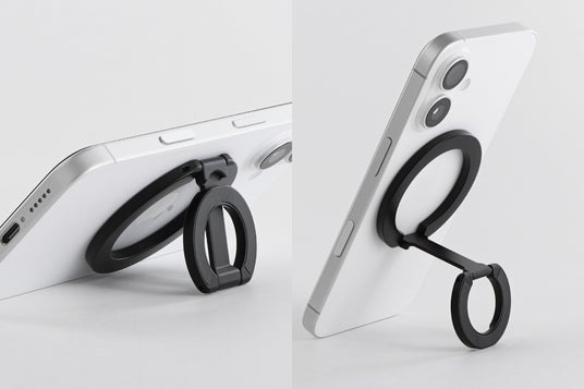 両面マグネットで壁面に固定でき、縦横両方スタンドできる二重構造の多機能リングです。