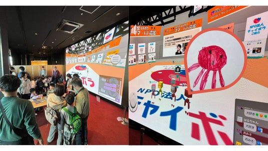 ファミリー層に情報を届けるために当日はファミリー層が多かったため、お子様が描いた絵を取り込んでメタバース上に投影できる仕掛けを用意。お子様が夢中で遊んでくれることでママ・パパの手を離れ、ママ・パパに対してチャイボラの向き合う社会課題や活動について、じっくりとお話しすることができました。