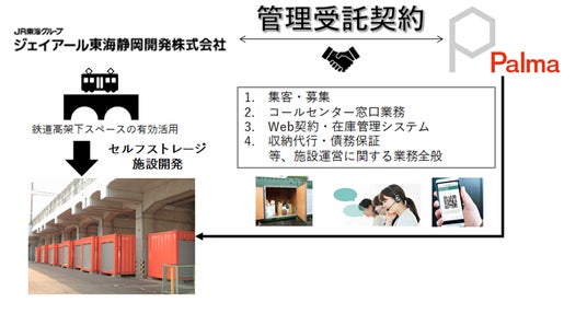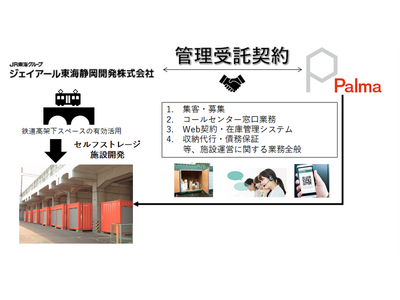 セルフストレージ(トランクルーム等のレンタル収納スペース)に関する運営サービス・施設開発事業を展開する株式会社パルマ(以下「当社」)は、ジェイアール東海静岡開発株式会社(以下「ジェイアール東海静岡開発」)が新たに開発セルフストレージ施設「」において、セルフストレージ運営の管理受託契約を締結しBPO業務を受託することになりましたので、お知らせいたします。