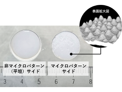 ・ ヒトの組織を模倣した形状:マイクロパターン技術によりシート上に精密な凹凸を作製。