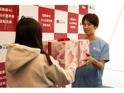 偏差値40からの医学部専門予備校、京都医塾株式会社(本社:京都市中京区 代表取締役 伊藤 章)は、集中力の維持・改善に受験のお供となる「リポビタンD(大正製薬株式会社)」などの受験生活をサポートする商品が詰まった『医学部受験合格祈願応援キット』を制作し、1月18日(土)に行われる大学入学共通テストから受験本番を迎える京都医塾の塾生へ当該キットを贈るために、医者 兼 お笑い芸人のしゅんしゅんクリニックPさんを四条烏丸 本校にお招きし、塾生へ贈答するイベントを1月14日(火)に開催しました。