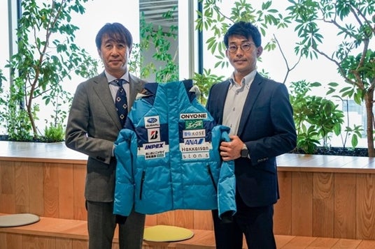 (左側) 公益財団法人全日本スキー連盟 会長 原田雅彦 (右側) BREATHER株式会社 代表取締役 御神村友樹