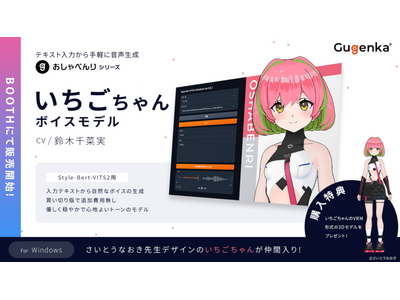 「おしゃべんり」は、株式会社Gugenkaが開発した、入力テキストから自然な音声を生成するサービスです。オープンソースソフトウェアである「Style-Bert-VITS2」(以下、SBV2)を使用し、Text-to-Speech(TTS)技術を使ってリアルな声を生成できます。第二弾となる今回は、さいとうなおき氏がデザインを手掛けた「いちごちゃん」のボイスを生成できる学習済モデルを提供します。また、いちごちゃんの声は、株式会社アル・シェア所属声優の鈴木千菜実(すずきちなみ)さんが担当しています。