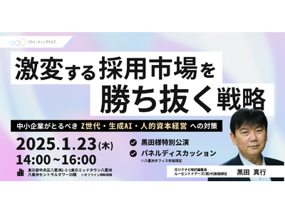 人事のための成長志向型コミュニティ「リクルーティングクラブ」を提供する株式会社HR Force(本社:東京都中央区、代表取締役社長:村田 泰子、以下HR Force)は2025年1月23日(木)、「激変する採用市場を勝ち抜く戦略」セミナーを開催することをお知らせします。