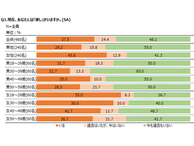半数以上が現在または過去に“推し”がいる(いた)経験を持つ男性は「アニメ・漫画・小説」、女性は「日本の有名人」が主な推し対象