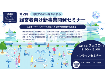 株式会社みらいリレーションズ(本社:東京都大田区、代表取締役社長:齋藤 康平、以下「みらいリレーションズ」)は、首都圏エリアにおける新事業開発を支援する「第2回 地域のみらいを牽引する経営者向け新事業開発セミナー」を開催いたします。本イベントは、経済産業省「プラットフォーム構築による新事業展開等支援事業」の一環として実施され、首都圏エリア(埼玉県、千葉県、東京都)の中堅・中核企業の経営者様に首都圏オープンイノベーションエコシステムの活動紹介および、伴走支援の具体的な取り組みを紹介します。地域の未来をリードする経営者の皆様に向けて、新たなビジネスチャンスを提供する場を創出します。