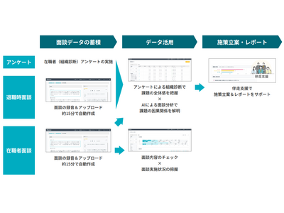 組織診断機能の強化: 従業員アンケートと面談データを統合的に分析し、組織の課題を可視化します。