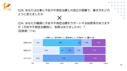- 職場に不妊や不育症治療をサポートする制度がない人は、仕事と不妊治療の両立が困難で「退職」を選択した人が37%でした。