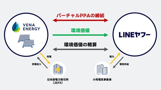 LINEヤフー株式会社(以下、LINEヤフー)は、岡山県真庭市に建設される「真庭太陽光発電所(2026年竣工予定)」において、再生可能エネルギー発電事業者であるヴィーナ・エナジーとバーチャルPPA(Virtual Power Purchase Agreement:電力需要家と発電事業者が、発電量に応じた環境価値のみを直接取引する電力購入契約)を締結しました。バーチャルPPA用の単体の太陽光発電所において国内最大規模※1となる「真庭太陽光発電所」から年間8,500万kWh分の非FIT非化石証書による環境価値(CO2削減効果)を20年間購入します。LINEヤフーがPPAを締結するのは今回が初となります。