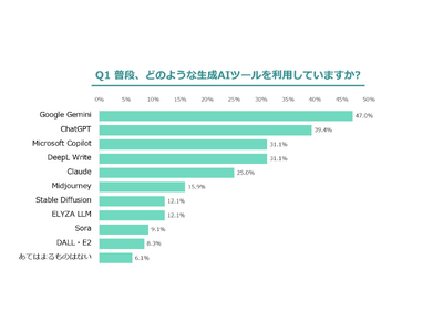 1.最も利用されている生成AIは「Google Gemini」文章生成や翻訳を得意とする生成AIが広く使用