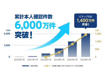 ~公的個人認証(JPKI)を含むICチップ方式の累計件数は1年で1.8倍と伸長し1,400万件超~