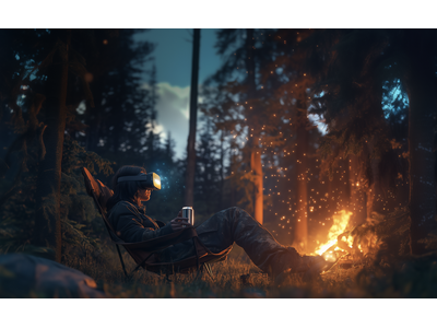 Apple Vision Proを装着することで、まるで森の中や焚き火のそばにいるような臨場感あふれる仮想空間が広がります。空間オーディオと組み合わさることで高い没入感を生み出し、ユーザーはお酒を楽しみながらリラックスできる環境を体験できます。