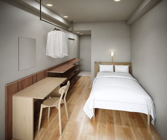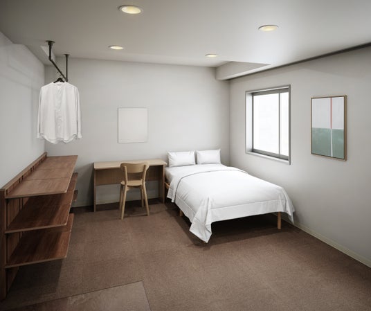 - 個室は、11.85平方メートル から17.50平方メートル までの広さで、賃料は99,000円からご提供いたします。全室がリノベーションされており、水回りも完備されています。使い心地と収納量を工夫したデザインとなっています。2人入居可能な部屋も用意しています。