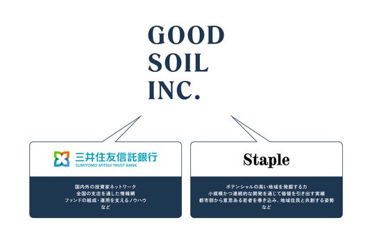 株式会社Staple(代表取締役:岡 雄大)と三井住友信託銀行株式会社(取締役社長:大山 一也)は、それぞれの強みを融合し、地域の持続可能な発展と資金循環を目的とした投資会社「GOOD SOIL株式会社」(GOOD SOIL INC.)を設立いたしました。