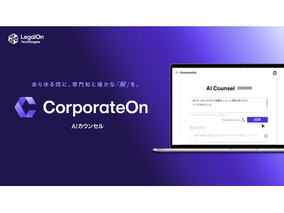 株式会社LegalOn Technologies(本社:東京都渋谷区 代表取締役 執行役員・CEO:角田 望)はコーポレート全域に事業を拡大し、AIカウンセル「CorporateOn」を1月20日より提供開始しました。「CorporateOn」は、独自のAI技術である「コーポレートRAGシステム」(検索拡張生成)とコーポレート領域全域にわたる独自の専門知識体系である「コーポレートナレッジグラフ」を活用し、ワンクリックで社内規程等の社内ルールや社内手続きの確認と人事労務・法務・経理財務・税務等のコーポレート全般にわたる論点把握ができる新プロダクトです。