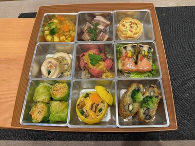 北摂弁当は、2025年大阪・関西万博のテーマである「いのち輝く未来社会デザイン」にあわせ、「食」による北摂エリアの魅力PRを目的に制作。各市町に在住または在学している高校生・大学生らからレシピを募集、北摂の食材を組み合わせた9品で構成されています。