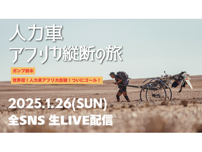 2025年1月26日(日)、ガンプ鈴木がアフリカ大陸を人力車で横断する壮大な旅のゴールを迎えます。この旅は、ケニア、タンザニア、ザンビア、ボツワナ、ナミビア、南アフリカの6か国を通じ、人力車で6,400kmを走破した、挑戦とつながりの物語です。