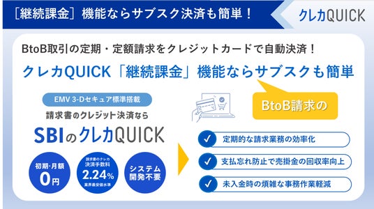 「クレカQUICK」の継続課金機能は、サブスクなど定期的な請求業務の効率化を支援
