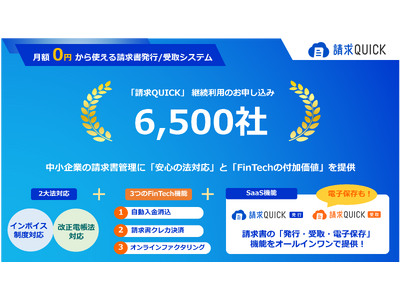 総合フィンテックソリューション企業であるSBI FinTech Solutions株式会社の子会社で、バックオフィス支援サービスを提供するSBIビジネス・ソリューションズ株式会社(本社:東京都港区、代表取締役社長:夏川 雅貴、以下「当社」)は、中小企業のインボイス制度対応と業務効率化をサポートするクラウド型請求書管理システム「請求QUICK」において、継続利用のお申し込み社数が6,500社を突破しましたので、お知らせいたします。