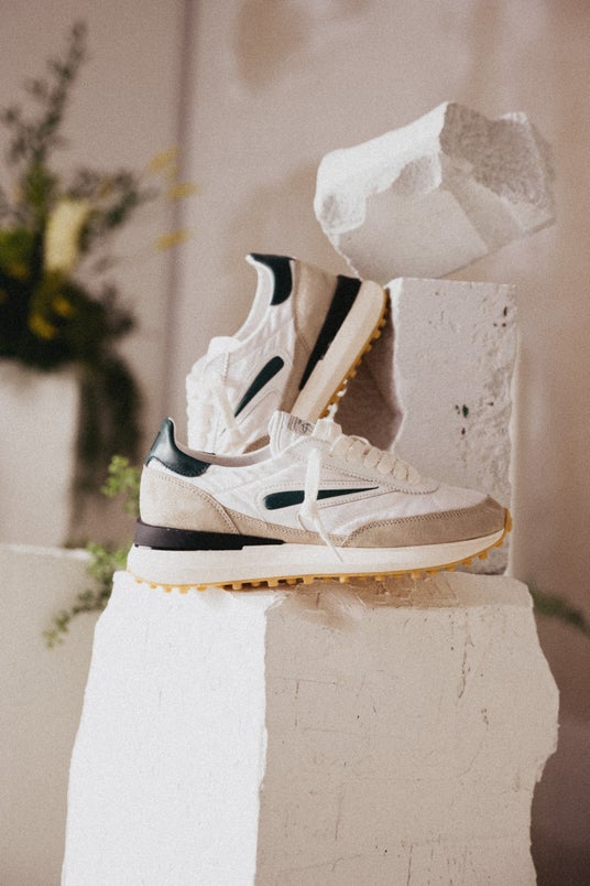- クラシックなランニングシューズに現代的なひねりを加えたデザイン。