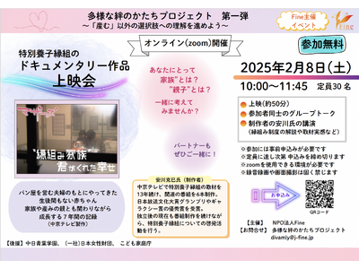 第一弾として、2025年2月8日(土)に「特別養子縁組のドキュメンタリー作品上映会」をオンラインで実施いたします。