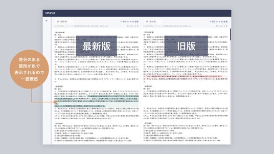 MNTSQ株式会社(本社:東京都中央区、代表取締役:板谷 隆平、以下「当社」)は、当社サービスである「MNTSQ CLM(モンテスキュー シーエルエム)」内にて、複数契約書データ間の「差分比較」機能をリリースしました。交渉のやりとりの中で多数回の変更・修正が入る契約書について、前バージョンなどとの差分を一目で特定でき、業務の負担を大幅に低減します。