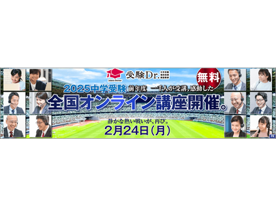 株式会社日本教育指導総合研究所JET(所在地:東京都新宿区、代表取締役社長:屋口 京子)が運営する中学受験専門の個別指導塾・家庭教師派遣の受験Dr.は、中学受験生のための「2025中学受験 全国オンライン講座」を2月24日(月・祝)に無料で開催する。