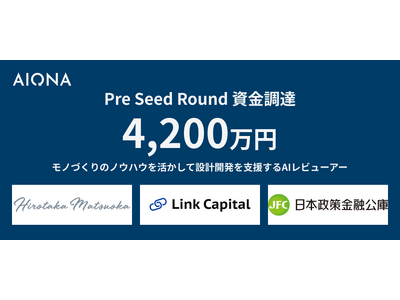 AIでノウハウの活用を支援し、誰でも効率的に高品質なモノづくりを実現できる社会を目指すAIONA株式会社(本社:東京都渋谷区、代表取締役:浅野友行)は、Link Capital(本社:東京都港区、ジェネラルパートナー : 青野佑樹)、松岡広隆を引受先とするJ-KISS型新株予約権発行と、日本政策金融公庫の創業融資により、プレシードラウンドにおいて総額4,200万円の資金調達を実施いたしました。今回の調達により、ソリューション開発を本格的に加速させます。