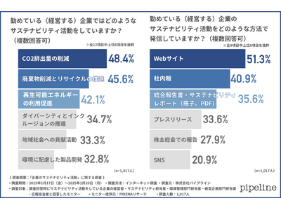 株式会社パイプライン(所在地:東京都中央区、代表取締役:石黒 文浩)は、サステナビリティ活動をしている企業の経営者・サステナビリティ担当者・環境管理部門担当者・経営企画部門担当者・広報担当者を対象に、「企業のサステナビリティ活動」に関する調査を実施しました。