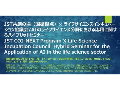 日本国内のライフサイエンス分野に関わる事業の創造、発展を支援することを目的として活動するライフサイエンスインキュベーション協議会(東京都千代田区、Willsame株式会社運営)は、JST共創の場(国循拠点)と、AIのライフサイエンス分野における応用に関するハイブリッドセミナーを開催いたします。