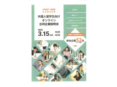 一般社団法人グローバルミーティング(事務局:東京都)は、福井県から委託を受け、日本国内の大学や大学院に在籍する外国人留学生を対象とした「オンライン合同企業説明会」を2025年3月15日(土)に開催いたします。