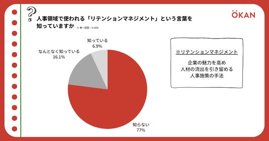 - 77%が「リテンションマネジメント」という言葉について「知らない」と回答