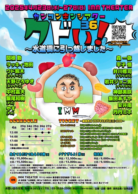 2025年4月に「カンコンキンシアター36 クドい!~水道橋に引っ越しました~」公演が、水道橋・IMM THEATERにて開催!